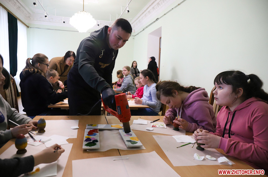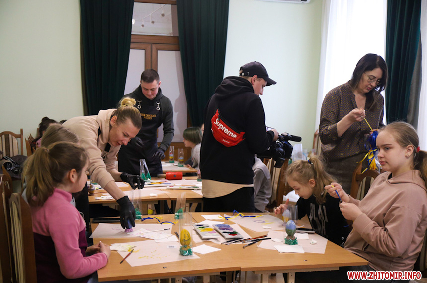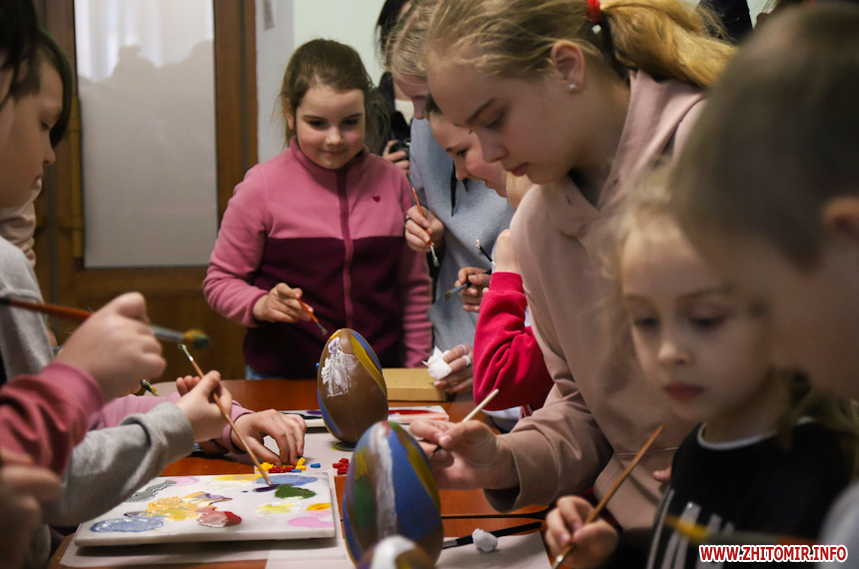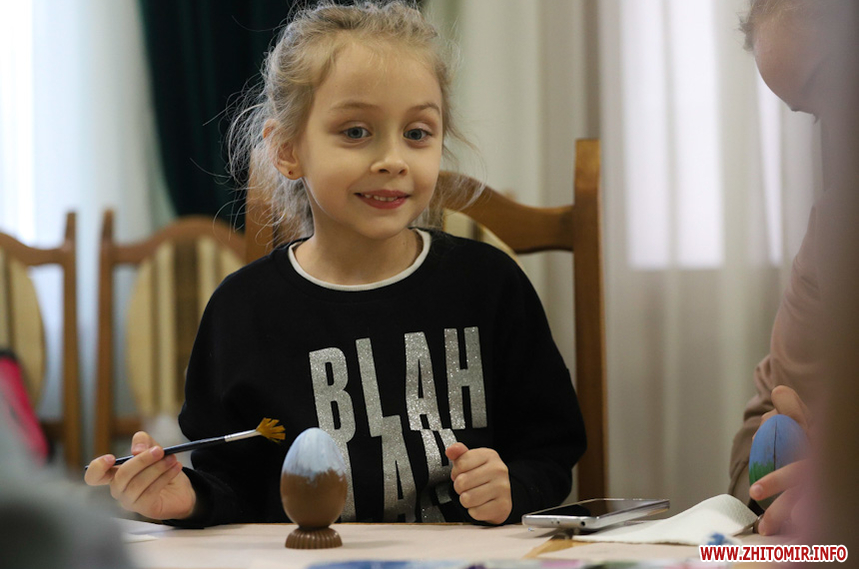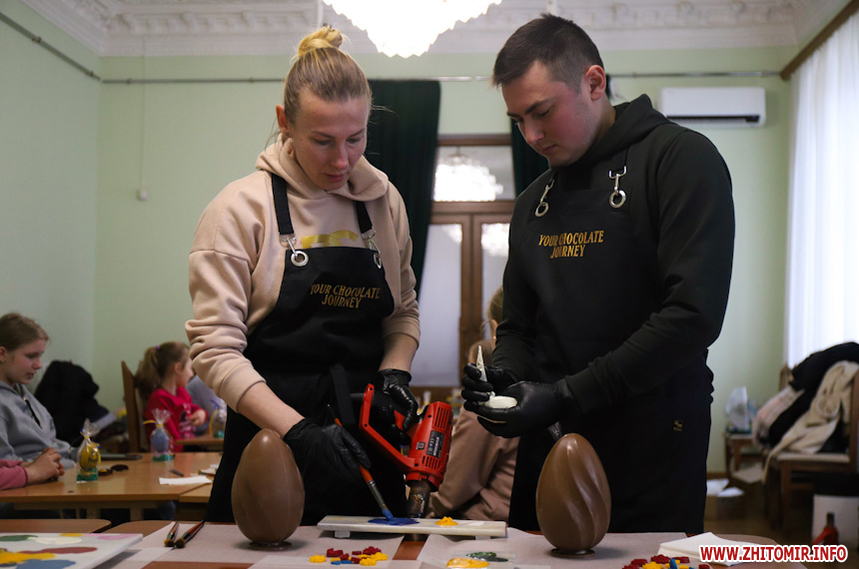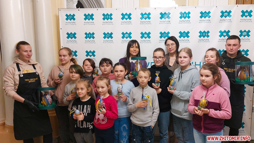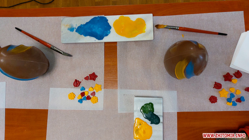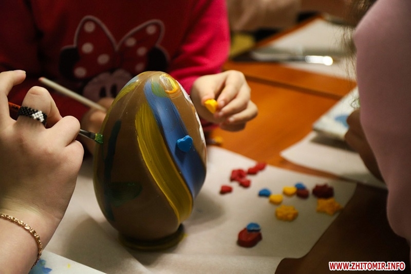 Також у рамках майстер-класу житомирські діти розмалювали три великих шоколадних яйця для мерів Ірпеня, Бучі та Житомира.