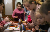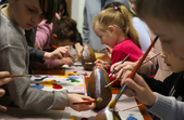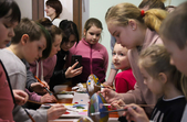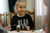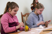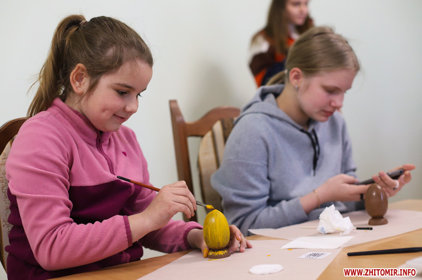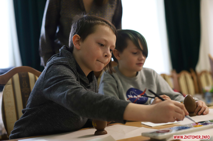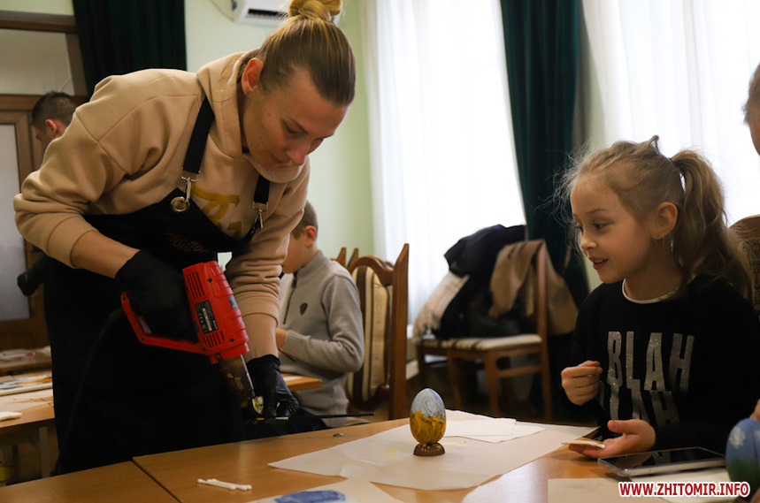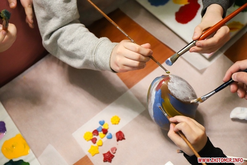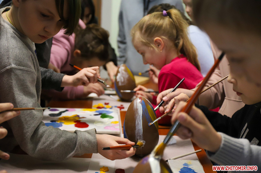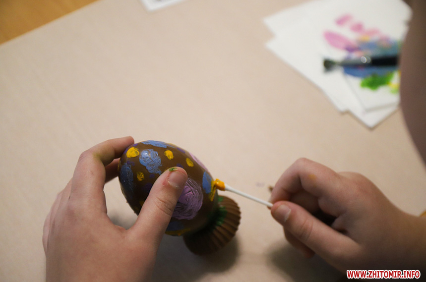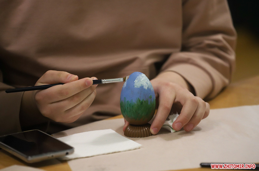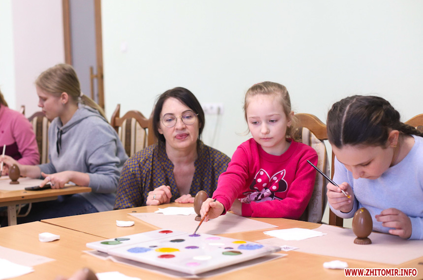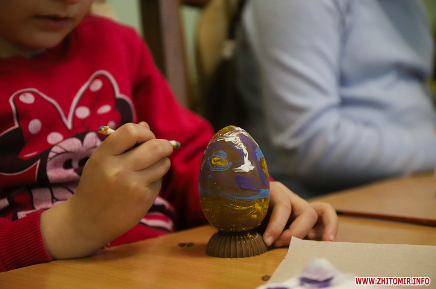 На майстер-класі у Житомирі діти вчилися розписувати шоколадні яйця. Захід влаштували управління культури міської ради і кондитерська Wander.