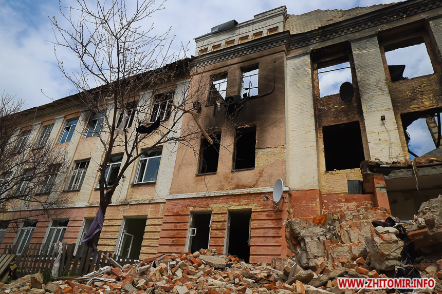 З перших днів повномасштабного вторгнення російських військ на територію України під авіаудари потрапляють цивільні об'єкти у різних містах країни. Під час авіаударів по Житомиру постраждали та загинули мирні люди, були зруйновані житлові будинки, школа, пошкоджені лікарні. Фотокореспондентка Житомир.info 3 травня знімала наслідки авіаударів по цивільних об’єктах, які росіяни бомбардували у березні 2022 року.