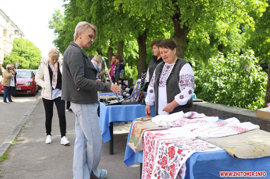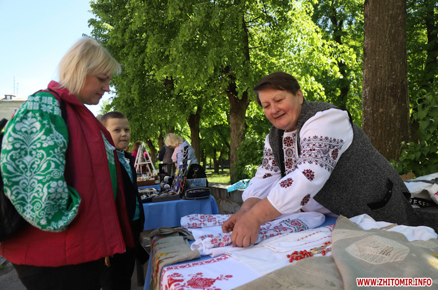 «Це європейська практика – влаштовувати такі заходи у скверах та парках, місцях відпочинку людей. Сьогодні з нагоди Дня вишиванки ми представляємо виставку майстрів народної творчості та презентації по локальній пам'яті та особливостям декору традиційного жіночому одягу кінця ХІХ – початку ХХ сторіччя у краєзнавчому музеї. Виставка організована за ініціативи управління культури та туризму Житомирської облдержадміністрації. Виставка проводиться з метою популяризації художніх промислів, наших майстрів та нашої області у рамках державно-приватного партнерства. Художні промисли – один з ресурсів креативних індустрій і можливість для людей створити та подарувати свято та покращити свій добробут», - розповіла головний спеціаліст управління культури та туризму обласної державної адміністрації Алла Бондарчук.