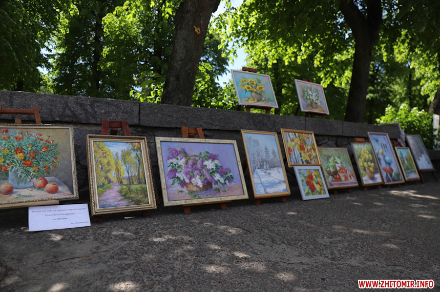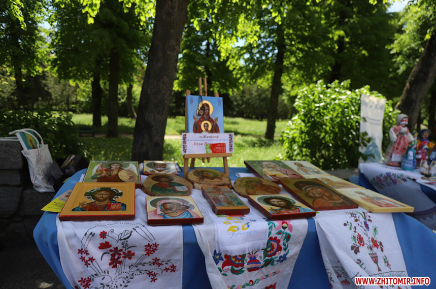 У Житомирі на Замковій горі влаштували мистецьку виставку. Більш як 15 місцевих майстрів народної творчості представили тут свої роботи.