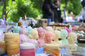 Тут є вишиванки, прикраси з бісеру, каміння та кристалів, косметика ручної роботи, свічки, ляльки-мотанки, ікони, картини та багато інших виробів, виготовлених майстрами власноруч.