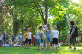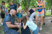 У Житомирі 9 червня до Міжнародного дня друзів для дітей влаштували зустріч з чотирилапими товаришами. На галявині міського парку дітей вчили правильно поводитися з собаками, розповідали, як не викликати агресію безпритульних собак та як з ними подружитися.