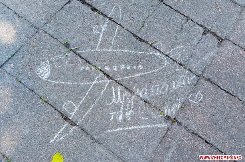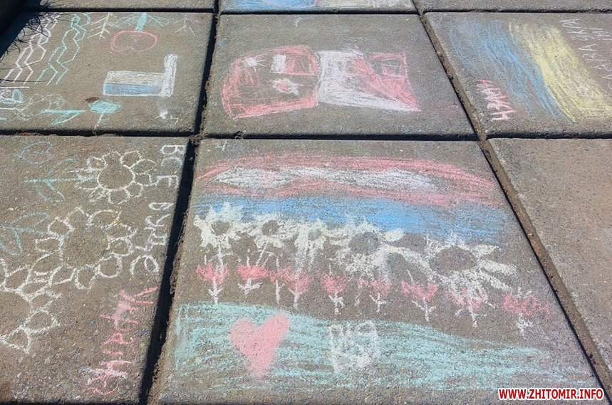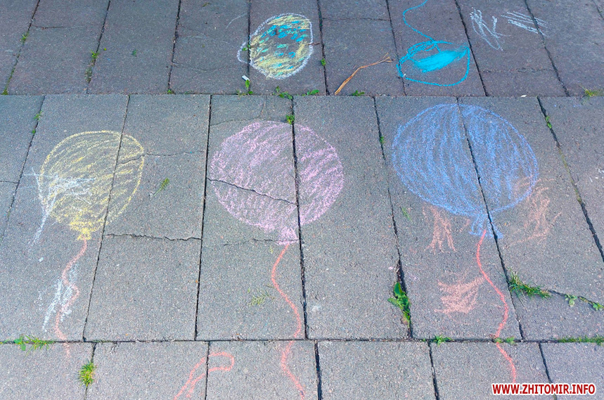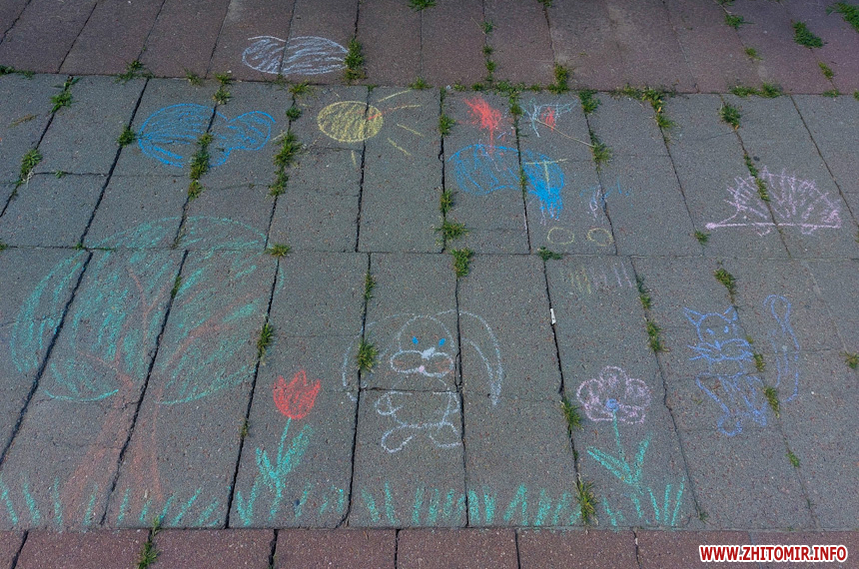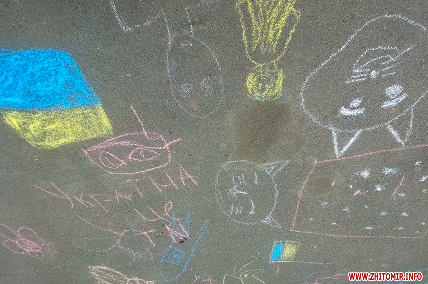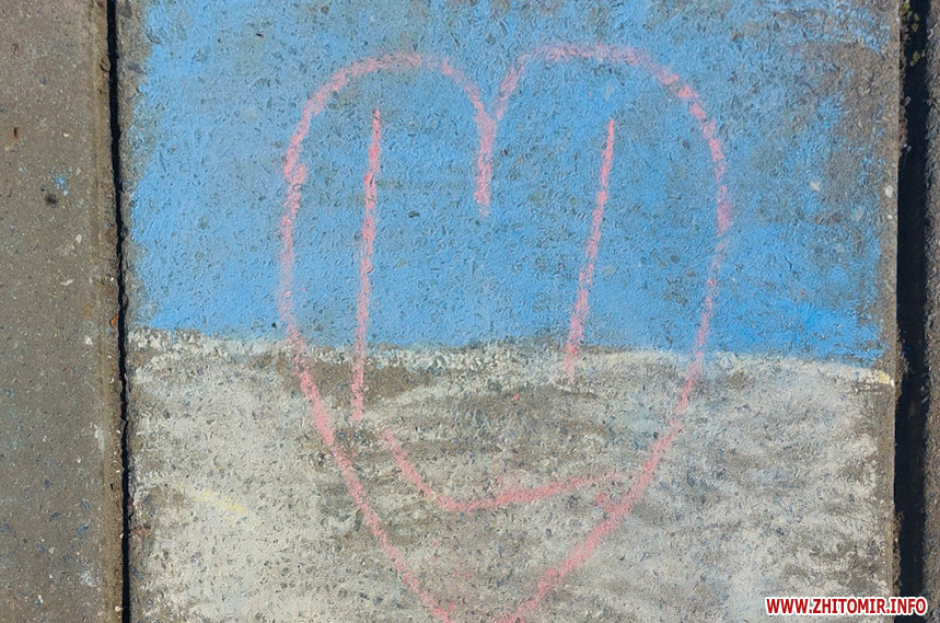Діти не завжди можуть виразити словами свої бажання, переживання та внутрішній світ. Але вони вміють відображати все це у малюнках. Те, що турбує, те, про що мріють, те, чого очікують. У різних містах України юні художники залишають на асфальті свої «мальовані послання» до Всесвіту. Діти у Житомирі теж залишають багато різноманітних «послань» у дворах багатоповерхівок, парках та скверах.