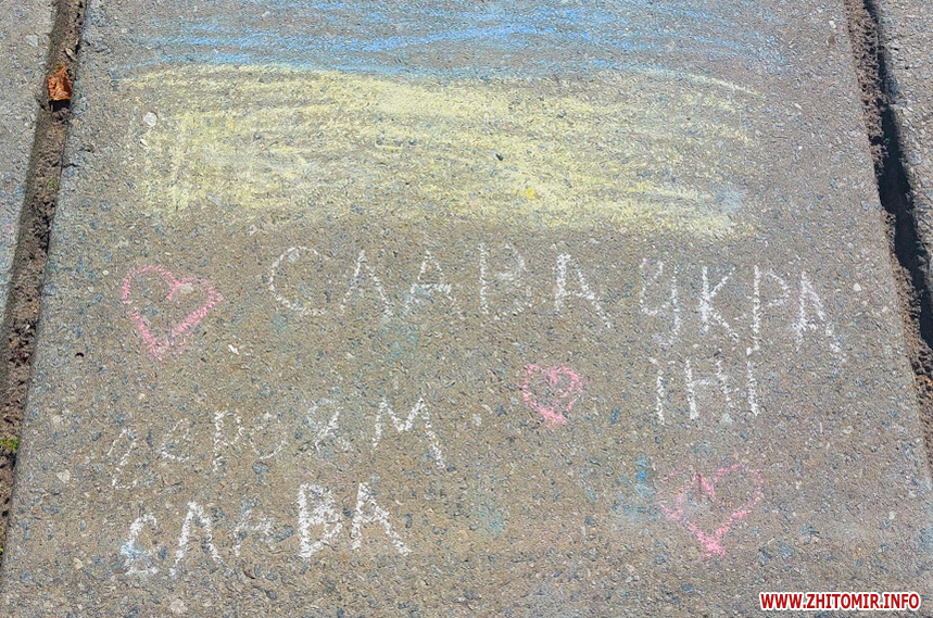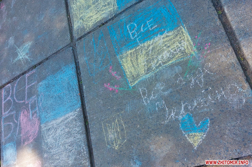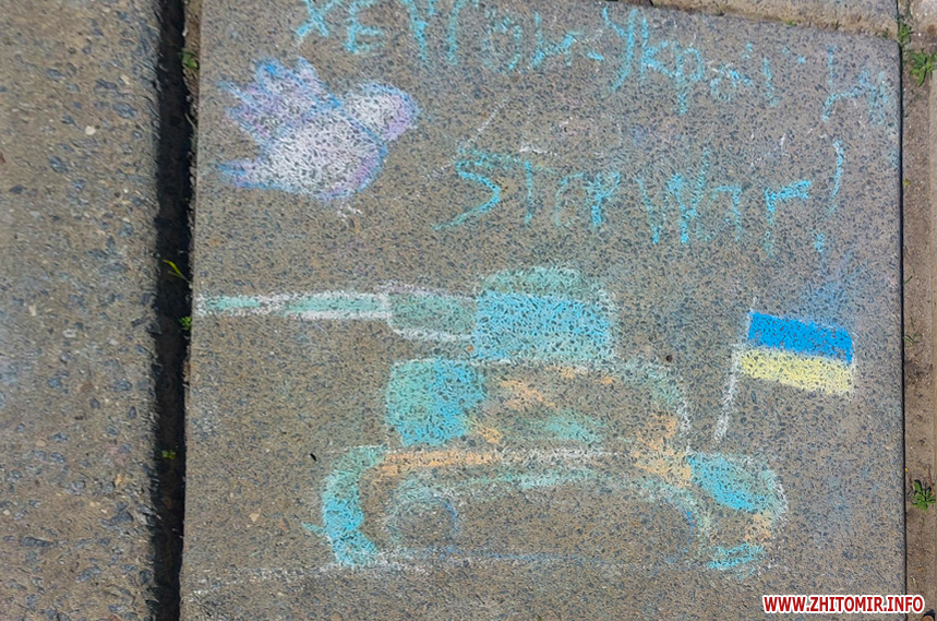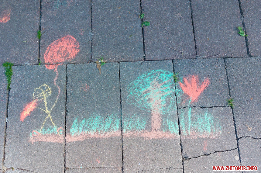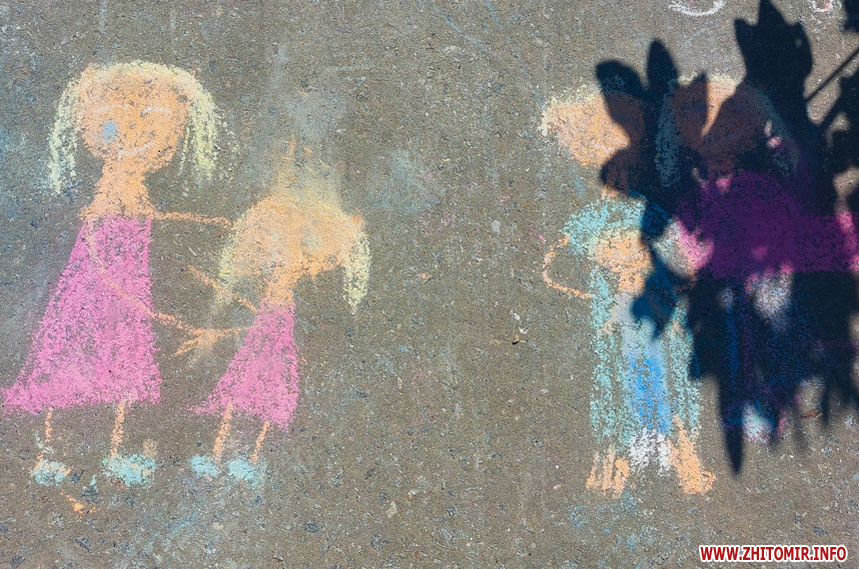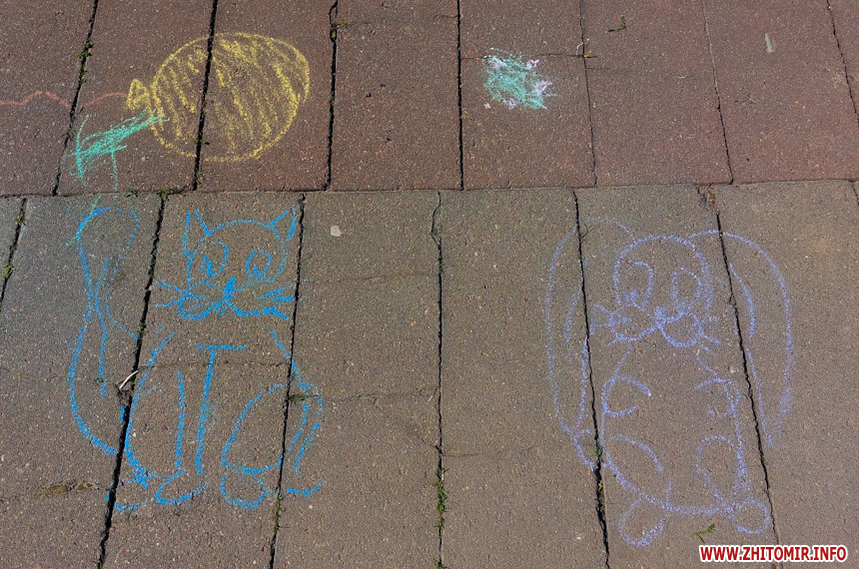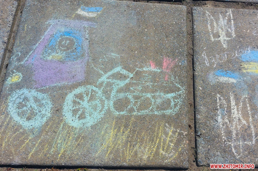 Діти не завжди можуть виразити словами свої бажання, переживання та внутрішній світ. Але вони вміють відображати все це у малюнках. Те, що турбує, те, про що мріють, те, чого очікують. У різних містах України юні художники залишають на асфальті свої «мальовані послання» до Всесвіту. Діти у Житомирі теж залишають багато різноманітних «послань» у дворах багатоповерхівок, парках та скверах.