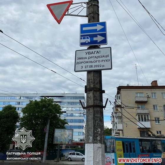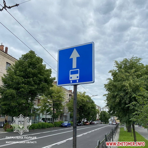 Водночас патрульна поліція Житомирської області наголошує, що відповідно до п. 17.1 Правил дорожнього руху України, на дорозі із смугою для маршрутних транспортних засобів, позначеній дорожнім знаком 5.8 5.8 «Дорога із смугою для руху маршрутних транспортних засобів» або 5.11 «Смуга для руху маршрутних транспортних засобів» забороняються рух і зупинка інших транспортних засобів (крім таксі та велосипедистів) на цій смузі.