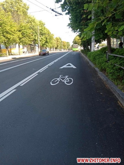 Нагадаємо, 21 червня міська рада інформувала, що цього тижня по вулиці Театральній, на ділянці від Великої Бердичівської до майдану Перемоги, наноситимуть нову розмітку. Про намір у центрі Житомира зробити смуги для громадського транспорту, якими їздитимуть і велосипедисти, у листопаді 2021 року розповідав заступник мера Олександр Шевчук.