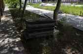 Рік тому, до реконструкції, у сквері квітучі яскраві клумби контрастували з побитою плиткою, розваленими бордюрчиками та місцями облущеною фарбою на арці. У сквері за «воротами» було багато лавок і смітників, але майже нема затінку біля лавок.