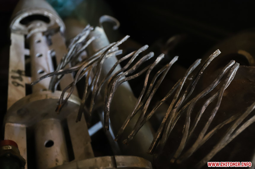 майже повний комплект військової форми (не вистачає кітелю та штанів), сухпайки, органайзер, рації та інші військові речі, уламки ракет, які прилітали по Житомирщині, частини точки У, мін та інших боєприпасів нині проходять процедури опису та каталогізацію.