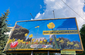 Вулиці міста просто заполонили рекламні борди з патріотичною тематикою.