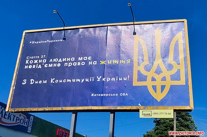 Як повідомляв Житомир.info, 28 лютого 2022 року в Житомирі з’явилися білборди з крилатою фразою прикордонників з остова Зміїний, на честь якої в квітні Укрпошта виготовила марку та конверт. 17 березня 2022 року мер Житомира у вечірньому зверненні просив рекламні агентства прибрати зовнішню рекламу з ненормативною лексикою, бо багато житомирян цим обурюються. Станом на 22 березня в Житомирі ще була зовнішня реклама з напрямком руху «руського корабля», але деякі білборди з цією фразою вже були демонтовані, також багато рекламних конструкцій в обласному центрі стоять порожні.