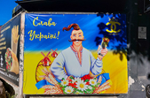 Капоти машин та фасади магазинів тут «одягають» у вишиванки, а на будівлях щомісяця з'являються нові патріотичні мурали.