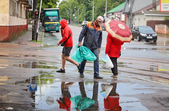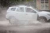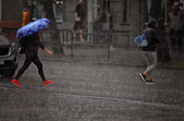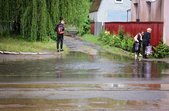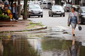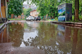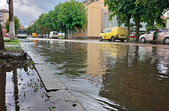 На узбіччях проїжджої частини вода не встигала стікати у дощову каналізацію і необачні водії обливали водою з калюж пішоходів.