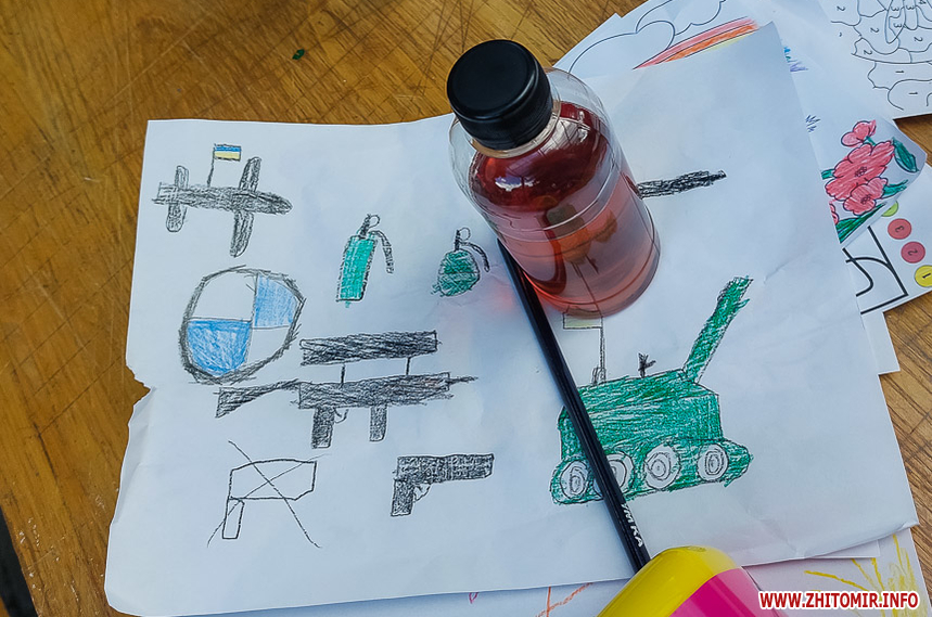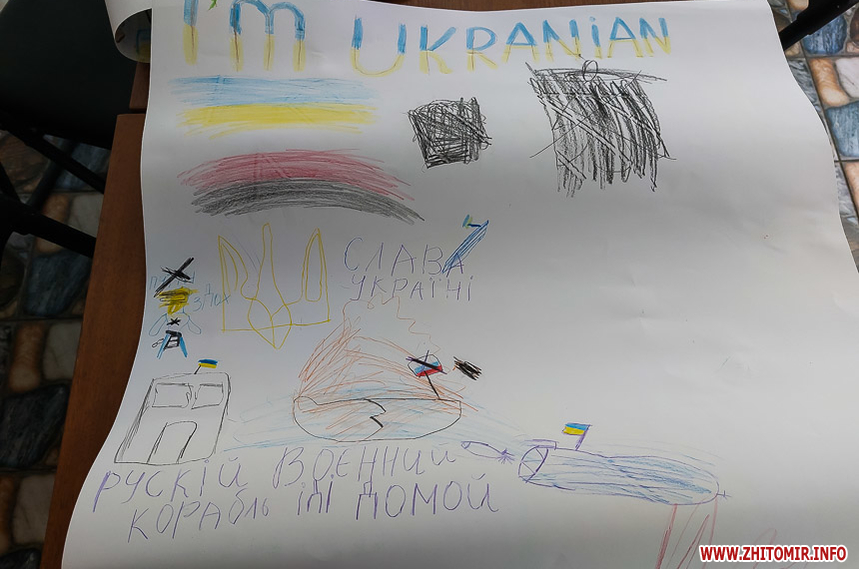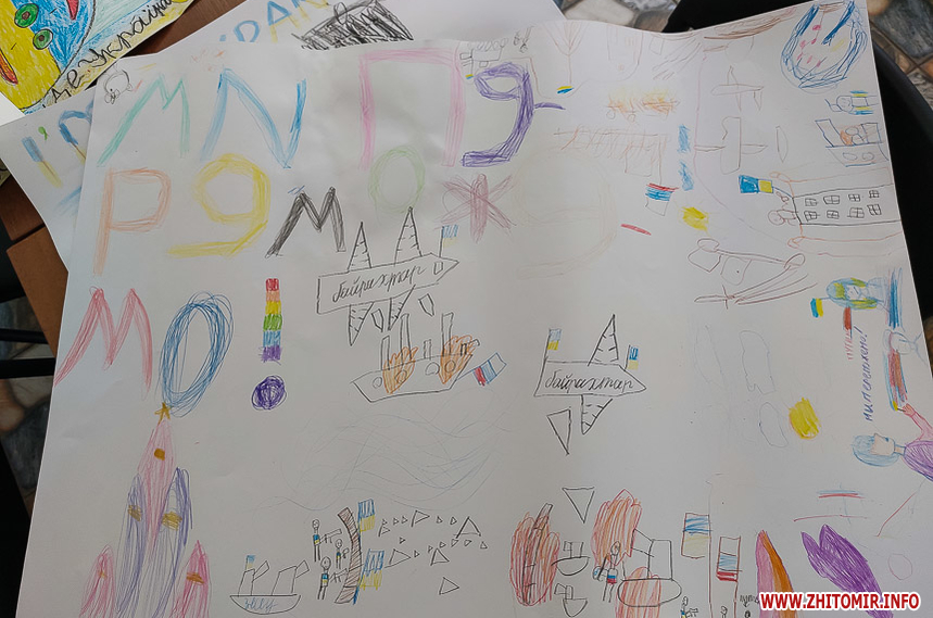 Маленькі українці, яких росіяни змусили покинути свій дім та тимчасово оселитися в Житомирі, звикають до мирного життя. Люблять малювати та співати, розгадувати загадки та грати в ігри, обійматися та танцювати. Усі вони бачили війну зблизька, чули вибухи і обстріли, і на власному прикладі знають, як росія “не стріляє по цивільних". Багато з них виїжджали з окупованих територій. Усі вони мають статус внутрішньо переміщених осіб.