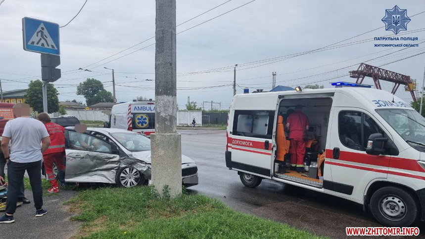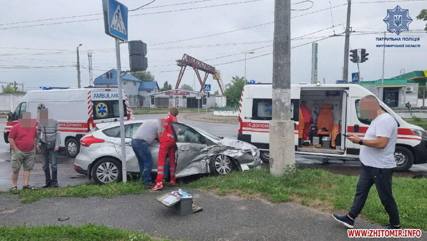 Опівдні 27 липня на перехресті вулиць Вітрука та Бориса Тена у Житомирі трапилася ДТП за участю автомобілів Mercedes та Ford. Внаслідок автопригоди травми отримали п’ятеро людей.