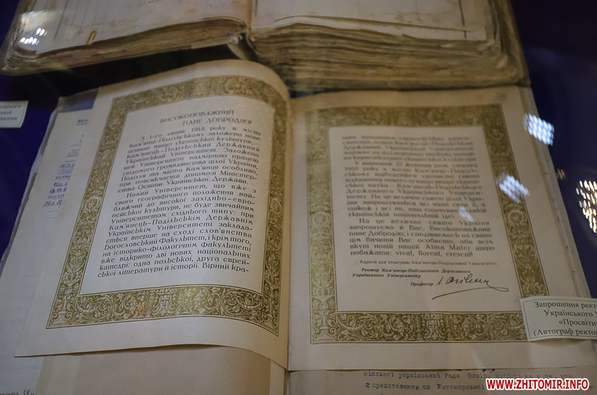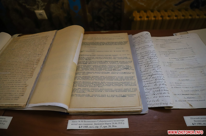 “Документи в основному представлені періодом української революції 1917-1921 років. Також є метричні записи наших видатних земляків - Олега Ольжича, Івана Огієнка, Лесі Українки. Це люди, які дотичні до нашого державотворення, символи нашої області та України. Архівні документи показують, які події відбувалися, чим вони були унормовані. Тут можна прочитати оригінал архівного документа про ту чи іншу подію, на власні очі побачити, як писалася історія України. Тобто, можна вивчати історію по оригіналах документів”, - розповів директор Державного архіву Житомирської області Ігор Слобожан.