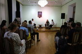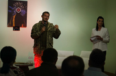 На відкритті виставки також виступив зірковий гість - військовий ЗСУ, артист, музикант, поет Коля Серга.