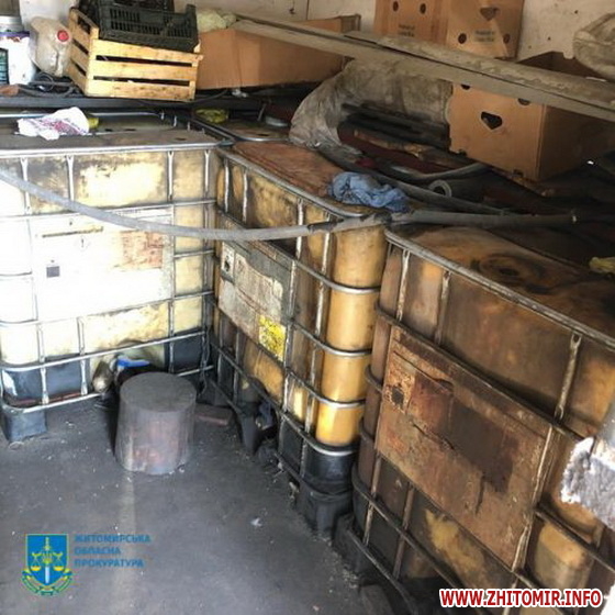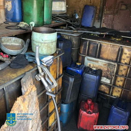 «За процесуального керівництва прокурорів Житомирської обласної прокуратури викрито групу осіб, причетних до незаконного зберігання з метою збуту та збуту незаконно виготовлених паливно-мастильних матеріалів, що становлять загрозу для життя і здоров’я людей (ч. 3 ст. 204 КК України). Слідством установлено, що протиправною діяльністю займалися п’ятеро місцевих жителів. Зокрема, на території одного з паркінгів великогабаритного транспорту, що у Житомирському районі, облаштували майданчик, на якому розмістили ємкості для зберігання та збуту паливно-мастильних матеріалів невідомого походження», - йдеться у повідомленні.
