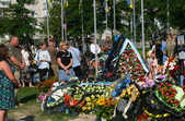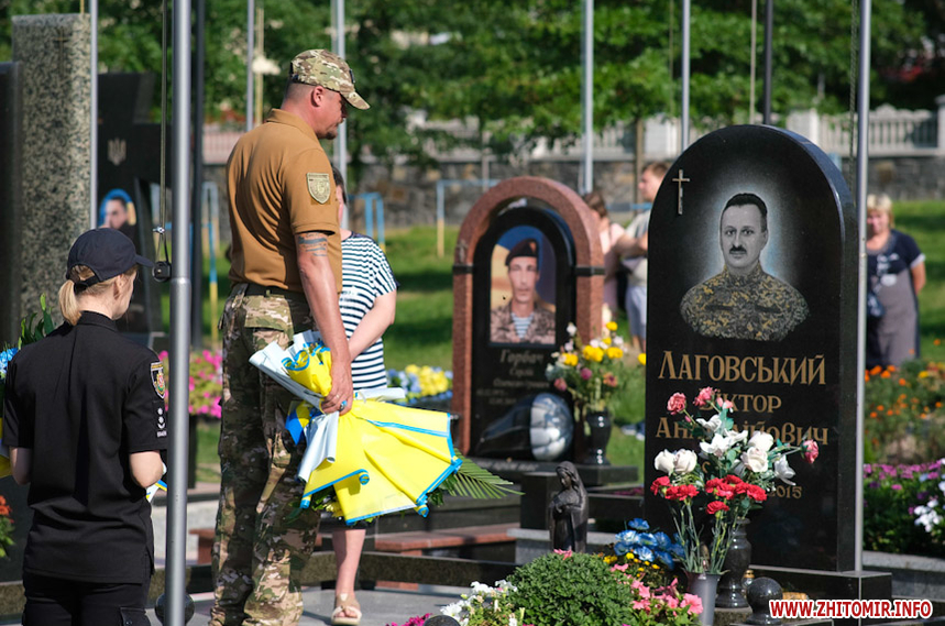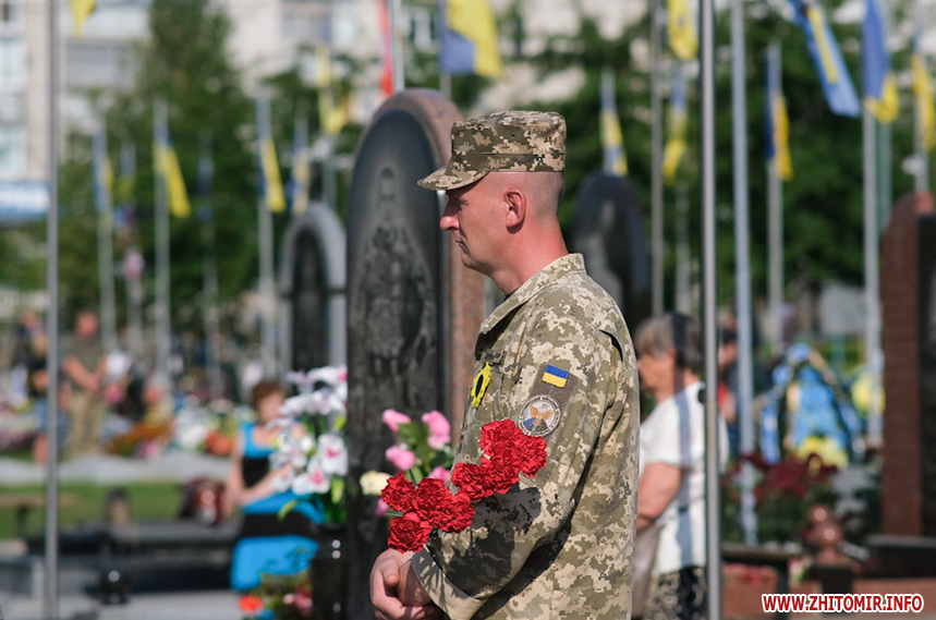 Четвертий рік поспіль вся Україна відзначає День пам’яті захисників України. Не зважаючи на те, що цей день припав на робочий понеділок, у Житомирі більше трьох сотень людей з квітами прийшли на військове кладовище віддати шану захисникам України, які загинули в боротьбі за незалежність, суверенітет і територіальну цілісність України.