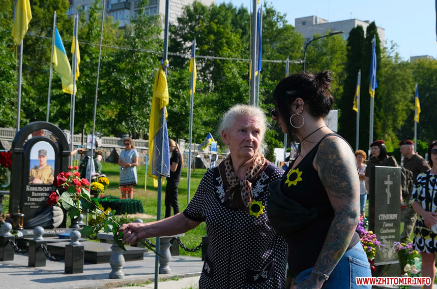 Мітинг-реквієм пройшов за участю рідних та близьких загиблих захисників України, містян, військових, волонтерів, духовенства, керівництва міста й області. Люди молилися за кожного загиблого в цій війні та віддали шану захисникам, похованим на житомирському кладовищі.