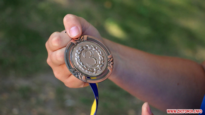 «Чемпіонат України серед спортивних шкіл у Новій Каховці. Це були мої перші 50 метрів, на які я приїхала і виконала майстра спорту. Перевиконала його на одне очко, чому були всі доволі раді і ми дуже сильно цим пишалися. Це перша медаль в історії Житомирщині за командні змагання. Ми тоді з дівчатами у 2019 році стали третіми на Чемпіонаті України серед юніорів. Одна з останніх - Чемпіонат Європи в Британії. Дуже старалися, дуже хотіли і ми це зробили», - показує свої нагороди Ольга Хомутовська.