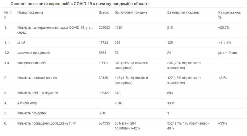 «Показник позитивних результатів ПЛР-досліджень за минулий тиждень залишається досить високим (42%) та, крім іншого, свідчить про ускладнення епідемічної ситуації», – констатують в обласному центрі контролю та профілактики хвороб.