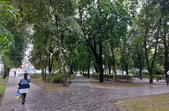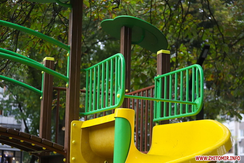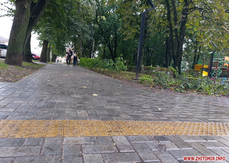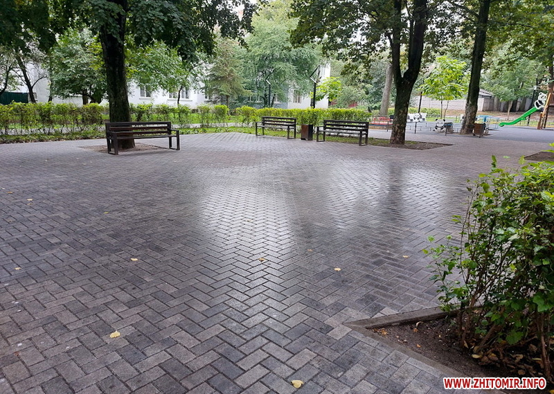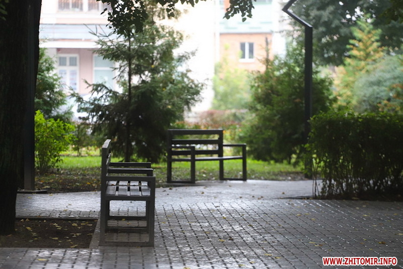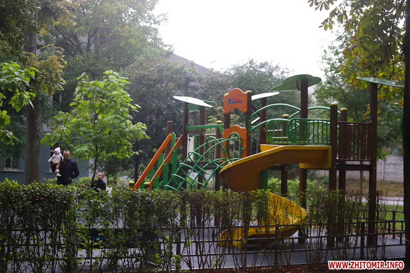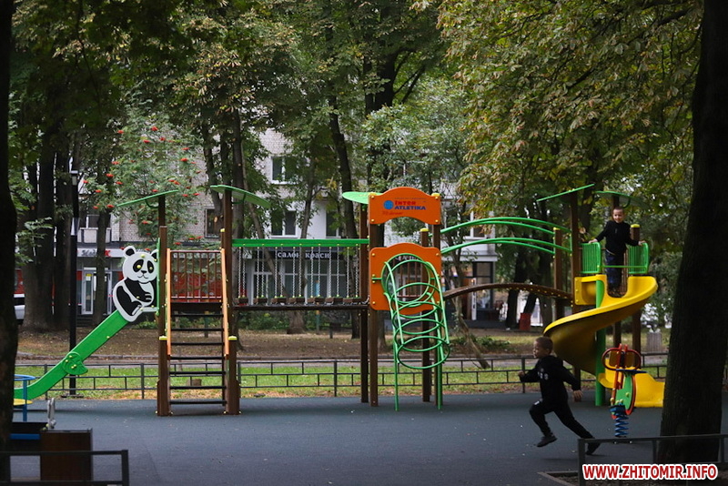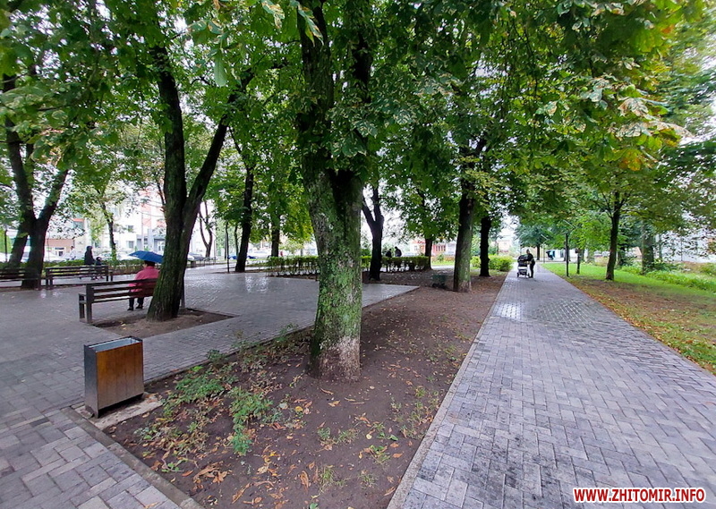 Сквер на майдані Путятинському - популярне серед житомирян місце для проведення дозвілля. Навіть у дощовій першій половині дня 14 вересня тут досить людно - на лавках під деревами сидять люди, а на оновленому дитячому майданчику граються діти.