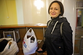 Житомирянка Тетяна прийшла за нитками. Розповідає, що плетіння - гарне заняття на холодні осінні вечори, це її хобі, і вона планує сплести більше десятка шкарпеток для воїнів.