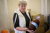 Ледь стримуючи сльози, керуюча справами виконавчого комітету Ольга Пашко дістає з пакета нитки - нові, щойно з магазину. Каже, що принесли їх старенькі бабусі. Змогли купити лише кілька мотків, проте були дуже раді, що хоч так можуть зігріти воїнів.