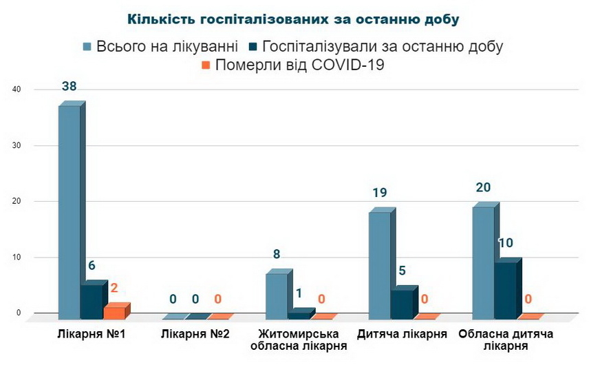 Відповідно до інфографіки, оприлюдненої пресслужбою міськради, летальні випадки, спричинені COVID-19, були зафіксовані у міській лікарні №1.