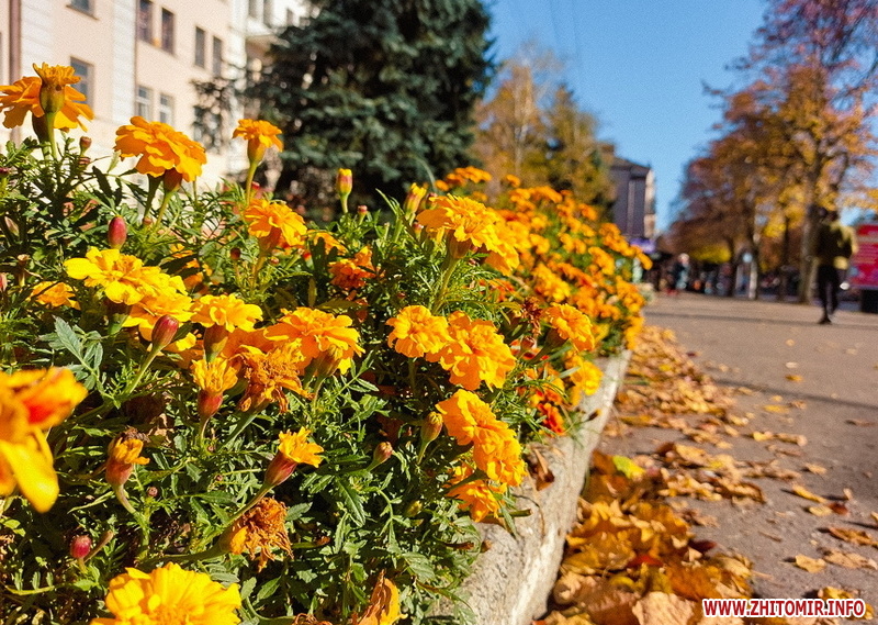 Не зважаючи на те, що на календарі вже останній місяць осені, житомирські клумби досі буяють квітами.