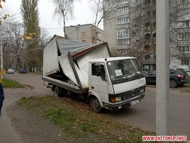 У Житомирі на вулиці Лесі Українки 5 листопада сталася дорожньо-транспортна пригода: вантажний автомобіль протаранив дерево.