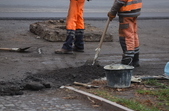 7 листопада працівники ПП «Автомагістраль» займаються ремонтом та заміною люків. на всій ділянці дороги від Лесі Українки до Миколи Сціборського, встановили попереджувальні знаки. Тут вже зняли верхній шар асфальту та проводять підготовчі роботи до асфальтування другої частини вулиці.