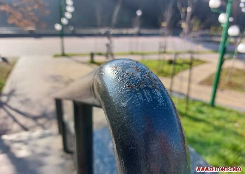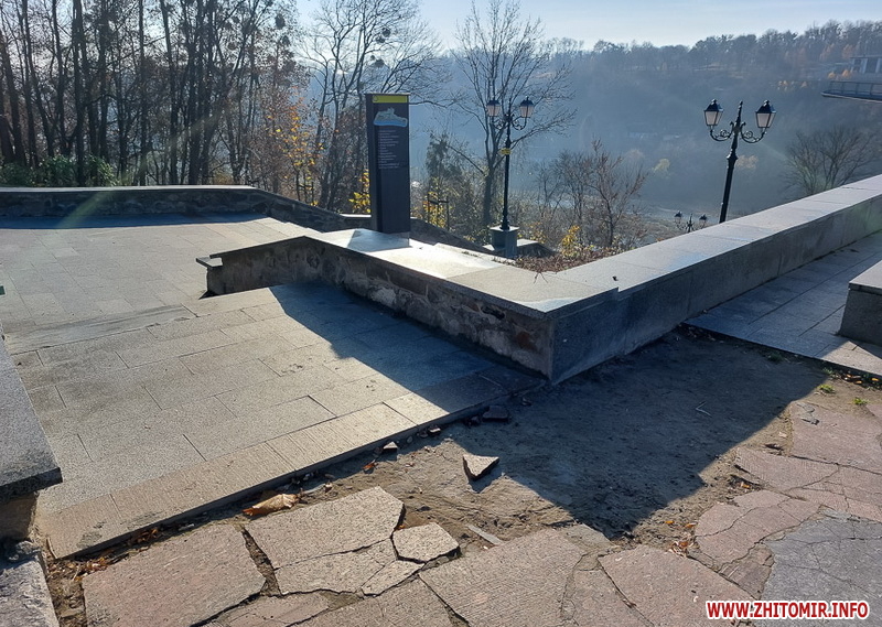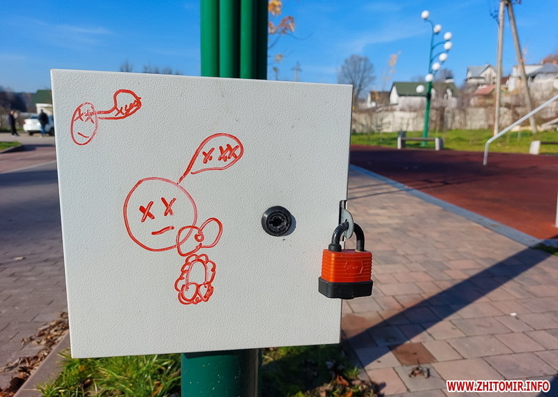 За цей час, поки приймали об’єкт, місцеві вуличні «митці» вирішили внести свої зміни у концепцію дизайну. Так, вандали вже вкотре обмалювали та обписали цензурними й нецензурними словами верхню альтанку та деякі гранітні плити.