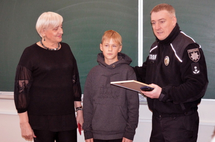 Тож 14 листопада поліцейські запросили підлітків до Житомирського районного управління, а наступного дня керівник поліції Житомирського району безпосередньо у навчальних закладах, де вони здобувають освіту (ліцей №3, №25), відзначив сміливих юнаків за допомогу у затриманні правопорушника Подякою райуправління. Віталій Малишев нещодавно травмувався, тож не зміг бути присутнім на врученні.