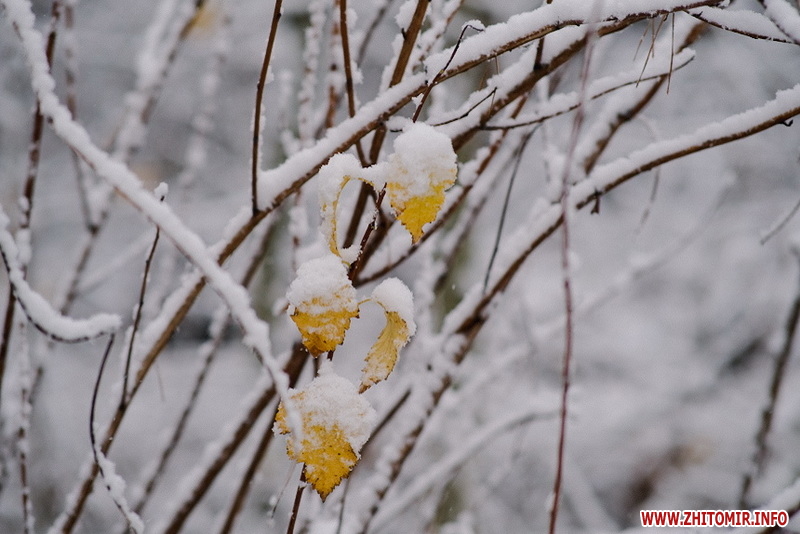 Ще вночі з 16 на 17 листопада почав падати мокрий сніг. І хоча в місті він дуже швидко перетворився на бруд, на його околицях з самісінького ранку можна було милуватися неймовірною красою природи. Синоптики спрогнозували, що зсередини листопада у Житомирі та області очікується похолодання. Так, упродовж робочого тижня, 14-18 листопада, в денні години стовпчики термометрів дотягуватимуться щонайбільше до +8, а вночі буде до 7 градусів морозу. Тож, не забувайте теплі рукавички і шапки, вірте в наших захисників та насолоджуйтеся красою довкола нас.