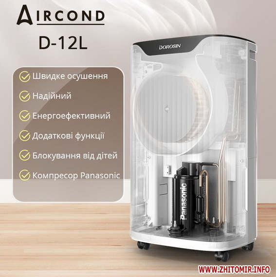 Одна з найпопулярніших моделей цього року — Aircond D-30L. Прилад працює на надійному двороторному компресорі Panasonic, що забезпечує довговічну роботу та енергоефективність. Aircond D-30L витягує з повітря до 30 літрів води / добу та має 3 роки гарантії. Завдячуючи своїй високій продуктивності, прилад підходить для великих квартир, офісів та будинків. Призначений для кімнати площею до 70 м кв.