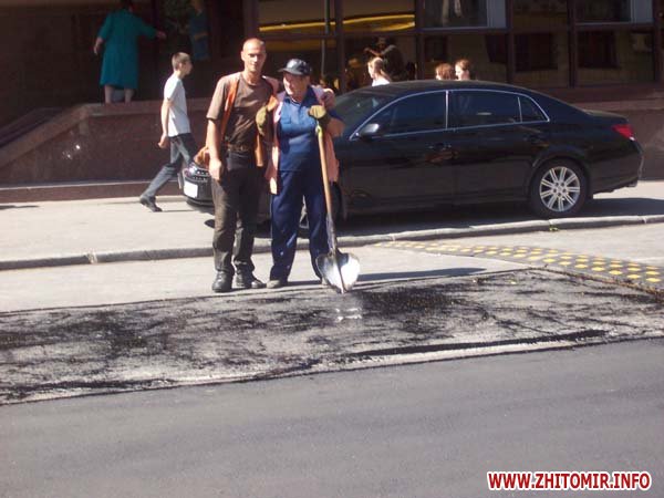 Приятно сообщить, что эта наболевшая проблема сдвинулась с мертвой точки. Сейчас в городе дорогами занимаются четыре бригады работников жилищно-коммунального хозяйства. Рабочие сообщили, Житомир info, что они уже отремонтировали улицы Большую Бердичевскую и Космонавтов. Ремонтировать дороги будут по всему городу. А вот так сейчас ремонтируют улицу Пушкинскую.