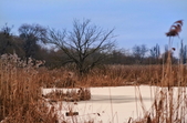 З самого ранку на обох ставах похмуро, але затишно, немає сильного вітру та не відчувається мороз. Сніг прикрив сміття, залишене відпочивальниками, а суха трава з під-снігу виглядає казковою.