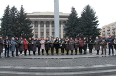 Тримаючи у руках прапорці та синьо-жовту стрічку освітяни Житомира влаштували акцію «Єдині» на майдані Соборному. Утворивши символічний ланцюг єдності працівники департаменту освіти заспівали гімн, бажаючи миру та соборності Україні.