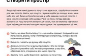 - Спробуйте також поговорити з собою по-доброму: «Це важко, але я тримаюся», «Я все ще можу піклуватися про себе й інших». Згадайте, наскільки легше долати труднощі, коли хтось підтримує вас і виявляє доброту. Чом би не стати такою людиною для себе?