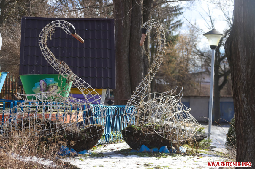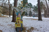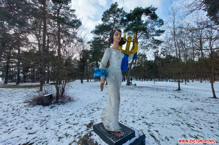 Натомість, античні та бронзові скульптури у центральному парку мають досить гарний вигляд, лише абстрактні скульптурні зображення ліворуч від арки з часом позеленіли, а у дротяних лебедях, не зважаючи на зиму, починають зеленіти нові паростки.