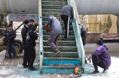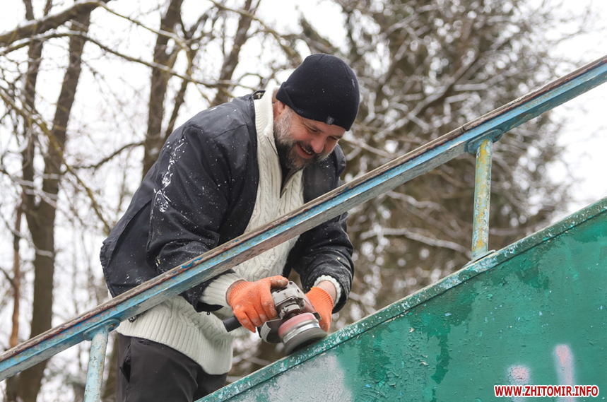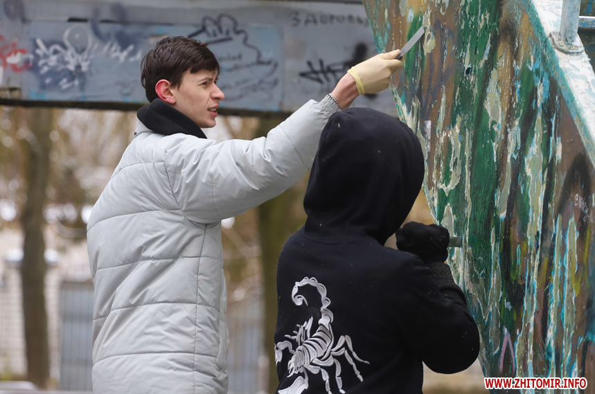 Більше десятка людей працює над зачищенням старої фарби та прибиранням. Усі вони, за словами організаторів, працюють на волонтерській основі, на фарбування та прибирання витрачають свої власні сили та кошти, щоб у подальшому мати можливість створити тут активність, яка допоможе зібрати кошти на благодійні потреби.