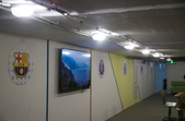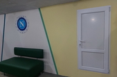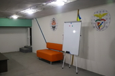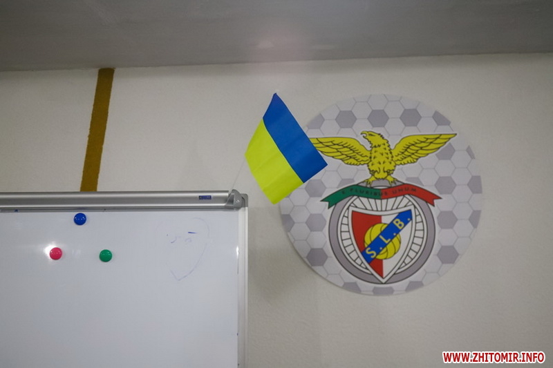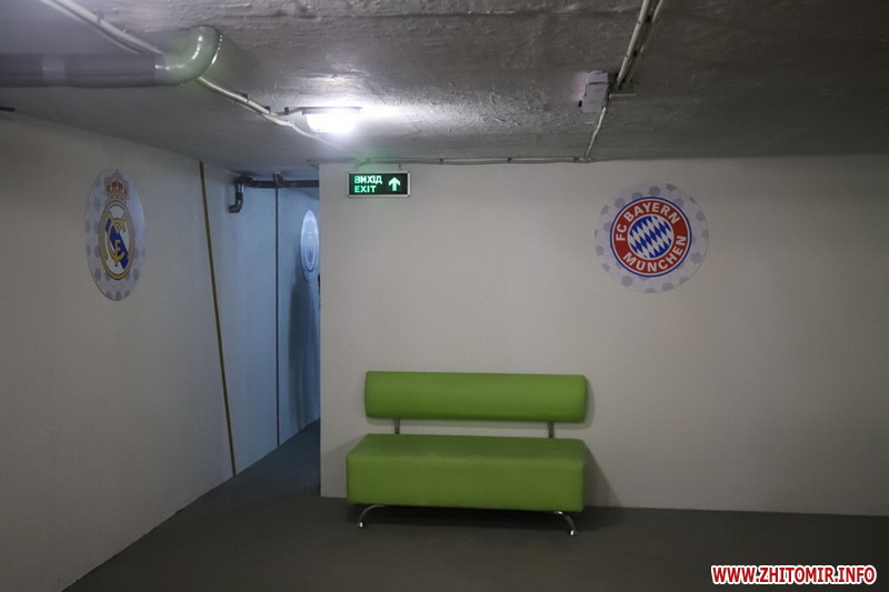 Дизайн укриття зробили у спортивному стилі, на стінах розміщені логотипи футбольних клубів України і світу.