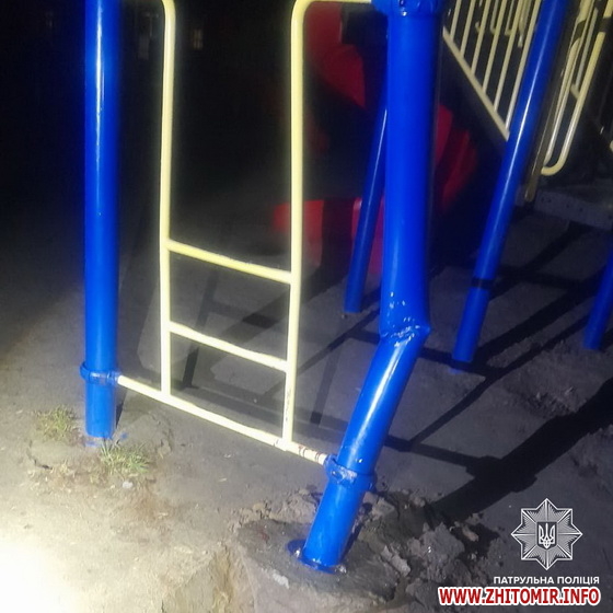 Уночі на вулиці Вітрука в Житомирі автомобіль ВАЗ врізався у металеву конструкцію на дитячому майданчику, а також в’їхав в інший автомобіль. Виявилося, що 20-річний водій легковика був нетверезий. А щоб уникнути зустрічі з правоохоронцями, хлопець утік. Однак патрульні його розшукали та склали низку адміністративних матеріалів.
