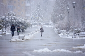 Містяни дістали з шаф шуби, кутаються у шарфи та намагаються зайвий раз не виходити на вулицю. У скверах та парках вимушено гуляють поодинокі власники собак, проте схоже, навіть собаки не хочуть гуляти вулицями в таку погоду.