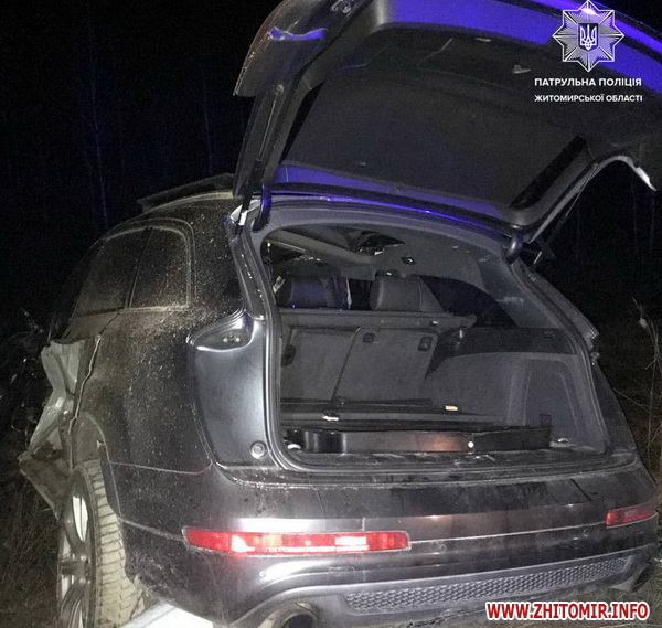 Вночі на 197 км автомобільної дороги М-07, поблизу села Бучмани Житомирської області, сталась дорожньо-транспортна пригода за участю автомобіля Audi. Патрульні встановили, що водій легковика не врахував дорожньої обстановки, не вибрав безпечної швидкості руху та наїхав на колесовідбійник після чого з'їхав до кювету», - йдеться в повідомленні.