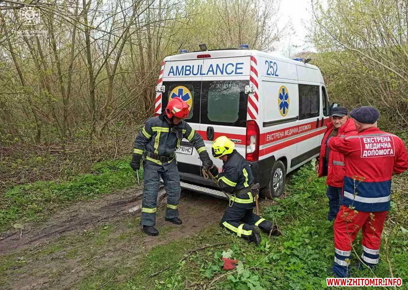 Нагадаємо, 19 квітня у Коростенському районі ввечері рятувальники відбуксирували «швидку», яка застрягла на узбіччі.