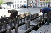 Житомирські фонтани готують до нового сезону. Працівники водоканалу відновлюють плитку, яка пошкодилась за зиму, чистять каналізаційні стоки та миють фонтанні чаші, щоб наповнювати їх водою. Зокрема, за роботою комунальників ми заскочили на Михайлівській.