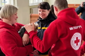«Евакуйованих зі сходу зустрічали на залізничному вокзалі Бердичева рятувальники, представники органів влади, представники благодійної організації «Карітас України», медики та волонтери. В залі очікування люди змогли трохи відпочити після тривалої подорожі, поспілкуватися з психологами ДСНС. Там же внутрішньо переміщені особи отримали грошову допомогу від держави. Кожен бажаючий зміг підкріпитися гарячою їжею, а також випити чаю чи кави. Сьогодні прихистком для евакуйованих зі сходу України став Звягельський район, зокрема Довбиська громада. 27 переселенців розселили саме на Звягельщині, інші залишилися на Бердичівщині», - йдеться в повідомленні.